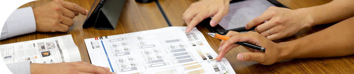また、メーカーや仕入れ先とのやり取りも重要な業務のひとつ。最新の住設建材の情報をキャッチし、営業担当と共有することで、より良い提案につなげることも私たちの大切な役割です。